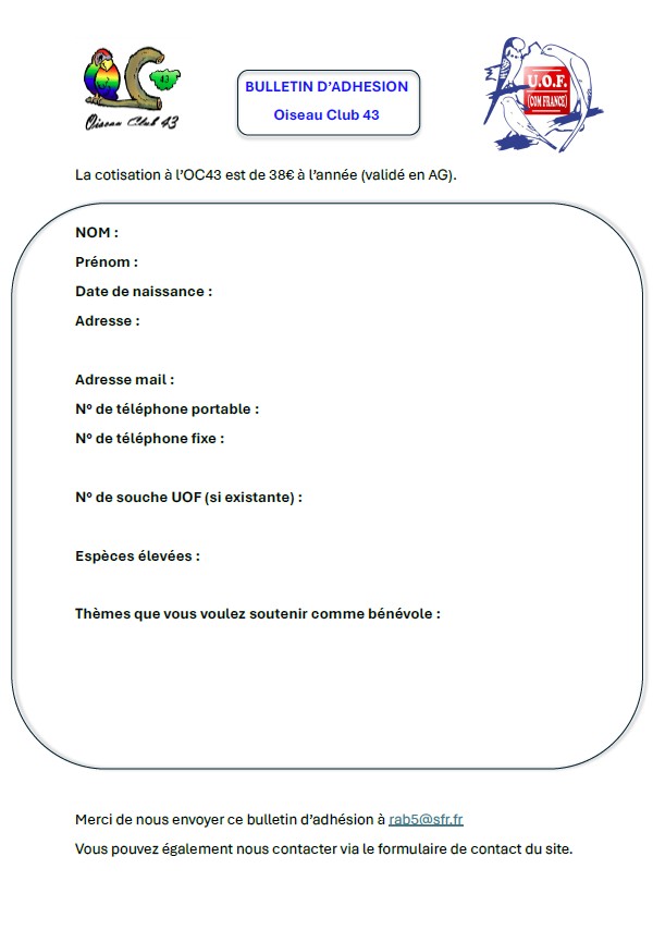 Pour 2026, l'adhésion à l'OC43 est fixée à 38€ par an (validé AG).